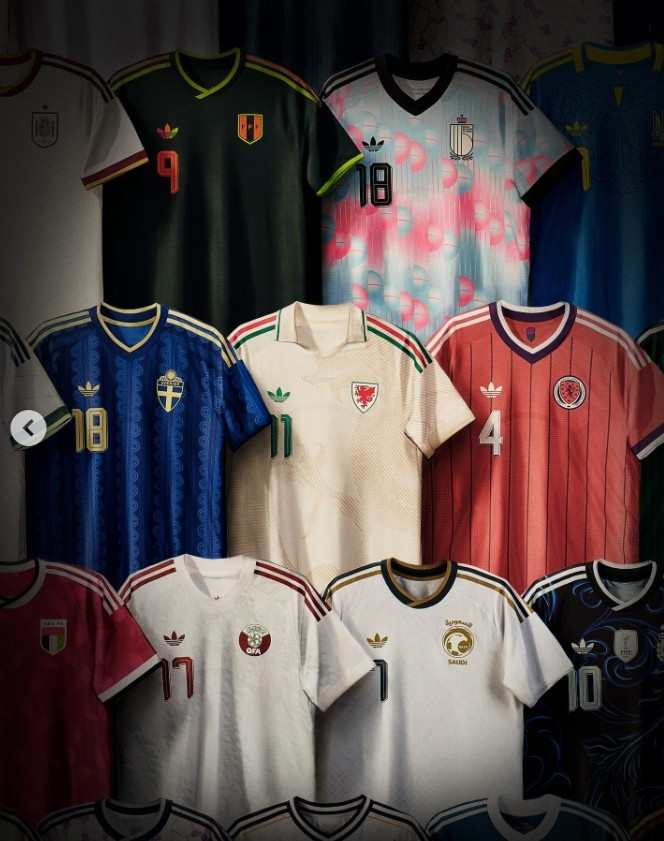 直播吧3月20日讯阿迪达斯发布2026年世界杯客场球衣,阿根廷队、德国队、意大利队、西班牙队、日本队、哥伦比亚队、苏格兰队等客场球衣亮相,此次阿迪达斯世界杯客场球衣采用三叶草logo,梅西、佩德里、路易斯·迪亚斯、卡拉菲奥里等人出镜宣传。